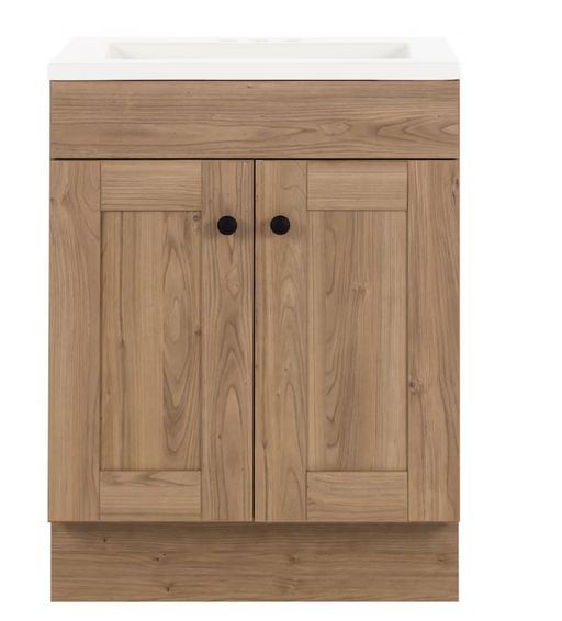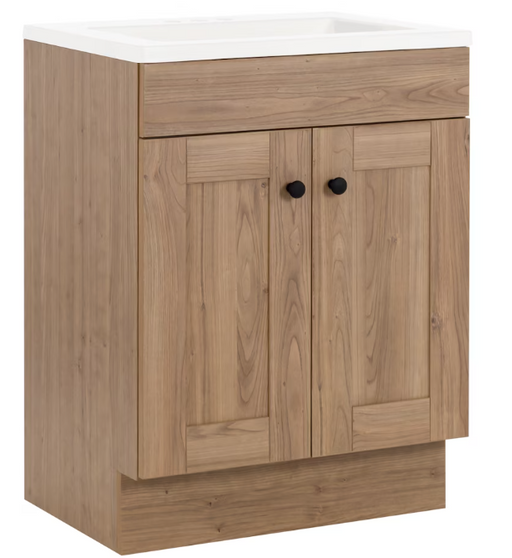 St. Paul Addison 24-inch W Bathroom Vanity in Sand Elm with Cultured Marble Vanity Sink Top(NEW)