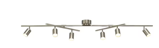 Globe Electric Hudson 6-Light 46W Integrated LED Track Lighting, Brushed Nickel, Double Swivel Center Bar, 3000K (OUT OF BOX)