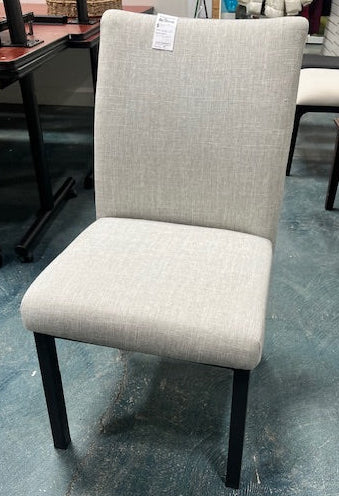 Langley$80.00Light grey dining chair upholstered in soft fabric, perfect for adding comfort and style to your dining space. IZ