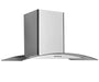 - European-style canopy wall mount range hood with stainless steel body and tempered glass finishes