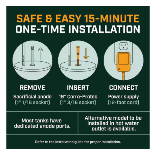 Corro-Protec Powered Anode Rod for 90-120 gallons Water Heaters, Stops Rotten Egg Smell, Corrosion and Limescale (new)