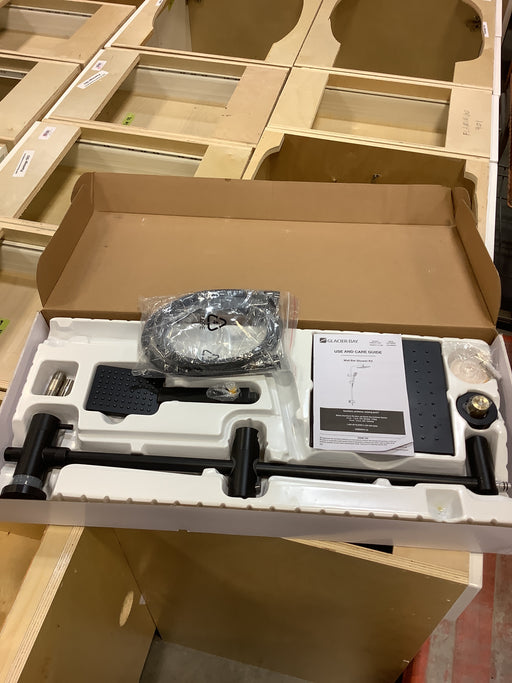 Glacier Bay Modern 8-inch 1-Function Wall Mount Rectangle Handshower & Showerhead Kit in Matte Black (Missing a piece.)