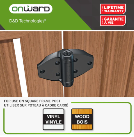 Onward (2-Pack) 6 15/16-inch (176 mm) Polymer Self-Closing Pool Gate Hinge, Wood/Vinyl Gates, 154 lb. Load Capacity, Black