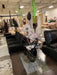 Decorative flourish vase with vibrant artificial flowers, perfect for brightening spaces; clean, stylish, and used. KS