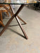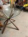 Glass dining table with wooden base in very good condition for sale. KS
