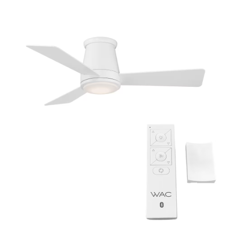 AbbotsfordOriginal price $470.00Current price $350.00Hug indoor and outdoor 3-Blade smart flush mount ceiling fan in matte white with 3000K LED Light Kit and Remote Control. -TS WAC Smart Fans can b...