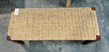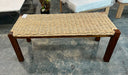 A stylish brown wicker entryway bench featuring wooden legs. Perfect for creating a welcoming focal point in your foyer while providing a practical seating spot. IZ