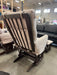 Oeko beige rocking chairs. Built on a wooden chair base for strong support and features a removable cushioned cover. Includes matching foot ottomans. Used, covers need cleaning. TT