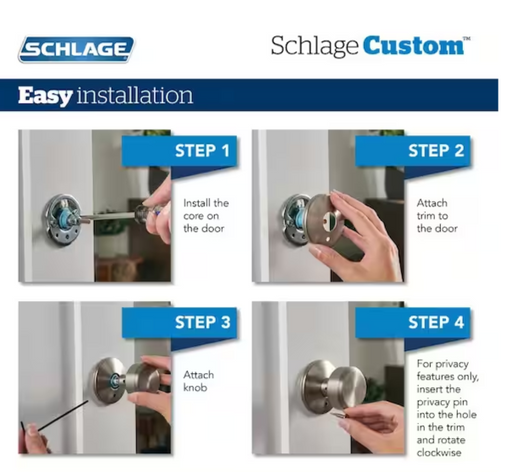 AbbotsfordOriginal price $118.00Current price $40.00The Schlage Custom Alexandria Glass Knob with Alden Trim Passage and Privacy Lock in Matte Black is uniquely designed to work on both Hall/Closet a...