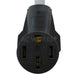 This AC WORKS® [EVL620MS-018] is a heavy-duty 1.5-foot adapter. The adapter is a NEMA L6-20P to NEMA 14-50R. The NEMA L6-20P is a 20 Amp, 250 Volt, 3-Prong locking plug. The NEMA 14-50R is a 50 Amp, 125/250 Volt female connector. The cable is an STW, 10/3, with a heavy-duty 600 Volt jacket. TR