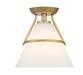 Get conical with this chic 1-light ceiling semi-flush mount, which showcases a shade of white opal glass paired with slender metal detailing in a lustrous vintage gold finish. This fixture is 10in. H and 10 in. W. Semi-flush ceiling lights allow for illumination above and below the fixture, creating a good wash of light that is perfect for brightening up any interior room. KS