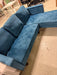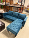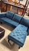 Slightly used blue velvet sectional offering plush comfort, elegant style, and spacious seating. Soft texture, modern design, and perfect for cozy living room relaxation. KS
