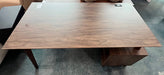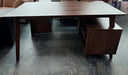 Brown wooden office desk with storage cabinet and cable management. IZ