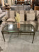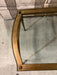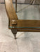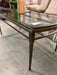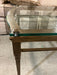 Antique-style coffee table featuring a sturdy metal base and clear glass top, perfect for elegant spaces. KS