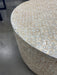 Mosaic coffee table with square shell-like design. Smooth finish. Damaged on back edge (see photos). TT