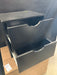 Matte black 2 drawer nightstand, minor scratch on corner. NC