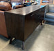 This Mid-Century Modern Entertainment Centre has lots of storage with 3 drawers and 2 shelving sections on each side! Some scratches and 2 chips on the right hand side as documented in the last 3 pictures. PR