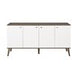 Make your dining room a talked-about focal point with this mid-century modern inspired 4-door buffet. Tapered solid wood legs ensure durability and the brushed brass finished knobs deliver a vintage look. Four 22.75-in tall compartments, each with an adjustable shelf provides ample room to store dinnerware and serving dishes. AB
