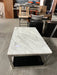 White marble coffee table featuring a smooth, polished surface, sturdy base, modern design, versatile style, and elegant centerpiece for living spaces. KS