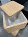 Square wicker ottoman/storage bin with removable top. Lined with fabric to protect your goods. Each ottoman pictured are sold separately. In great condition (slightly used). TT