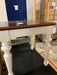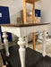 Small brown wood square table with white base, sturdy, functional, compact design, versatile, stylish, perfect for any space. KS