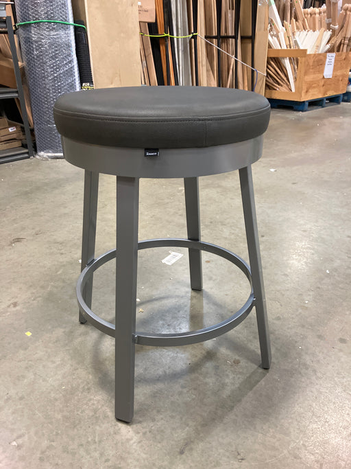 Amisco Amisco Clock 26 in. Swivel Counter Stool - Black Faux Leather / Metallic Grey Metal (New)