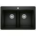 Blanco DIAMOND SILGRANIT 33 in. 50/50 Double Bowl Drop-In/Undermount Kitchen Sink - Coal Black (New)