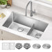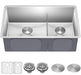 Kraus 32" stainless steel set with double sink, bottom grid assembly, and drain caps. IZ
