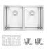 The Stylish Precision Handmade 16G Stainless Steel Double Bowl Sink offers modern design and durability for upscale kitchens. Measuring 28"x18", it features premium 16-gauge 304 stainless steel with a satin finish, deep rectangular bowls, rear-set drain, and soundproofing. Includes basket strainers, bottom grids, mounting hardware, and cutting template. Rust-resistant and built to meet top North American plumbing standards. PR