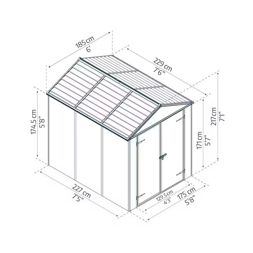 LangleyOriginal price $800.00Current price $600.00CANOPIA by PALRAM Rubicon 6 ft. x 8 ft. Dark Gray Garden Storage Shed. SG Dimensions - 7'6" x 6' x 7'1"