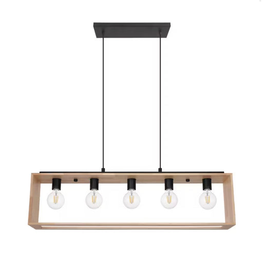 Eglo Famborough Pendant Light 5L, Black Finish with Natural Wood (new)