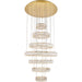 - Seven tiers of minimal stainless-steel rings in a smooth gold finish become dazzling when they are covered with rectangular and square spectacularly faceted royal-cut clear crystals.