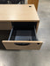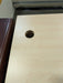 This Maple Laminate Desk features a durable, easy-to-clean surface combined with a single pedestal file cabinet for convenient storage. Its sturdy construction supports daily office tasks, while the file cabinet helps keep important documents organized and accessible, enhancing workspace efficiency. Ideal for professional environments requiring both function and style. There is some scratches and slight scuffing, as pictured below and is missing one of the black rings for the cord spaces. DW