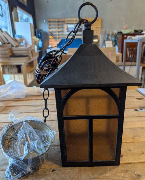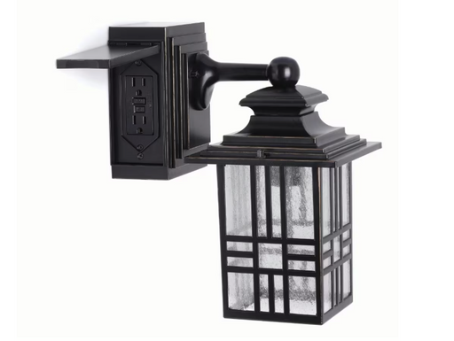 Black and Bronze Outdoor Wall Lantern with Built-In Electrical Outlet (New)