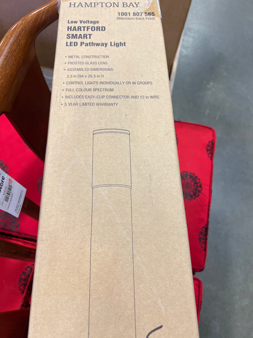 Hampton Bay 20 inch H Smart LV Millennium Black LED Bollard Light with Frosted Glass Shade Powered by Hubspace (new)