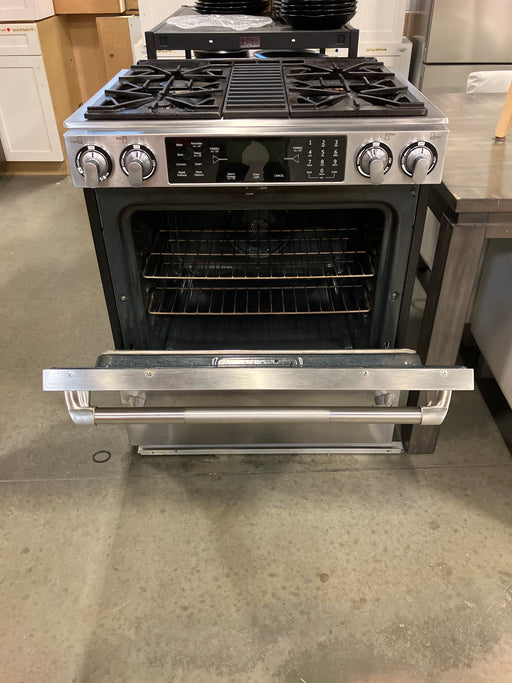 ChilliwackOriginal price $1,500.00Current price $750.00This pre-owned JennAir JDS8860BDP dual fuel range combines four gas burners with 750 BTU output and a precision electric oven. The gas cooktop deli...