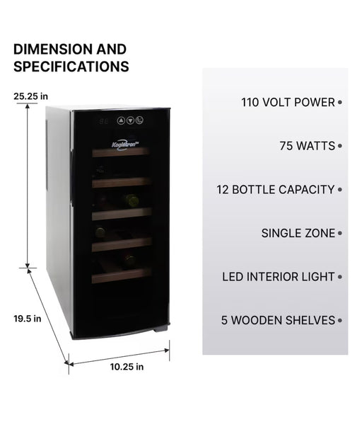 Koolatron Deluxe 12 Bottle Wine Cooler, Beech Wood Racks, Black, 1 cu. ft. (28L), Freestanding (new)