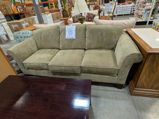 Langley$300.00A comfortable three-seater couch upholstered in olive green fabric. Gently used and ready to add warmth and style to your home. IZ *Damaged on back...