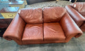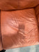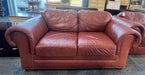 Warm burnt orange leather loveseat, perfect for two. A cozy seating solution with classic appeal and comfortable proportions for any living space. IZ