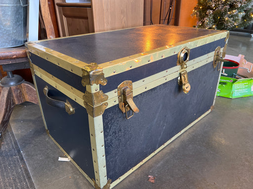 Vintage Blue and Brass Steamer Cedar Trunk (used)