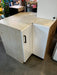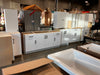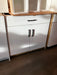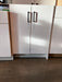 A striking 16-piece kitchen set featuring glossy white cabinetry accented with black door hardware. The contrasting hardware adds contemporary edge to the clean white finish, creating visual interest and modern appeal. Complete collection for a coordinated, polished kitchen look. BH
