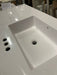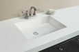 White vanity top with rectangular bowl and overflow. Add a sophisticated look to your bath. TT