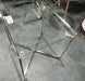 Sleek glass side table featuring a sturdy silver base, perfect for adding a modern touch to any room. IZ