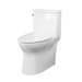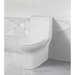 Modern comfort-height 1-piece elongated toilet featuring a soft-close seat, quiet refill valve, and siphon jet flush—ideal for a clean, contemporary bathroom aesthetic. Missing side caps that hide the trapway. DW