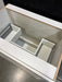 High end, well made base vanity cabinet with pipe cut out and soft close drawers. J.T