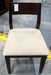Dark brown wooden dining chair with a comfortable fabric seat. IZ